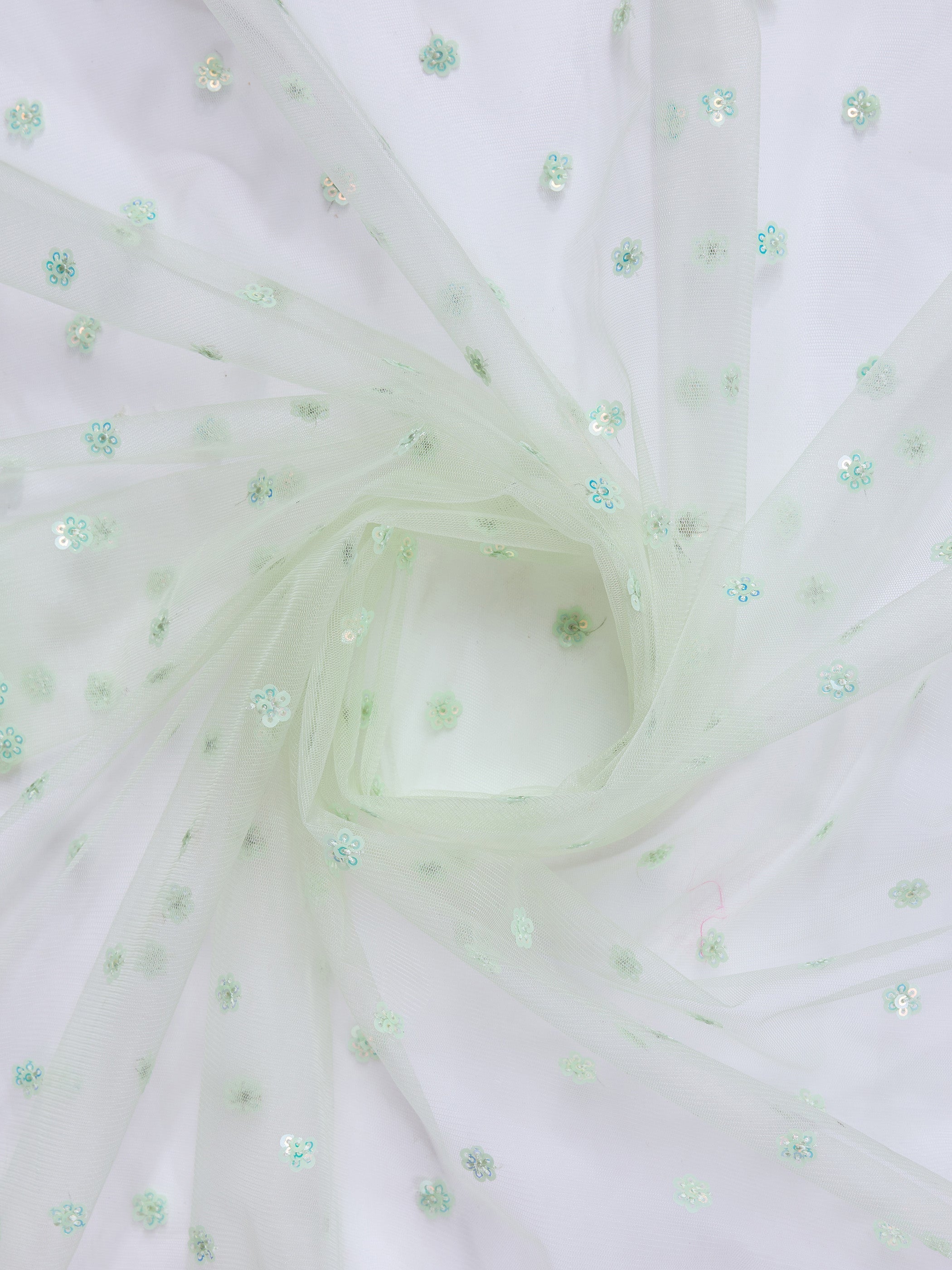 Light Green Soft Net Sequins Embroidery Work Designer Saree